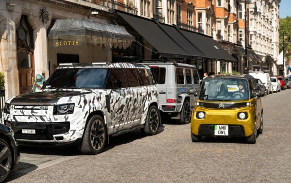 Електрическата триколка може да бъде забелязана и редом със суперлуксозните Rolls-Royce Phantom Drophead Coupe и Bentley Mulsanne, както и до една много скъпа класика – Aston Martin DB5. И накрая, Ami се движи редом до големи SUV като Mercedes-AMG G63 и камуфлажен Land Rover Defender, показвайки, че размерът няма значение, когато трябва да направиш впечатление.