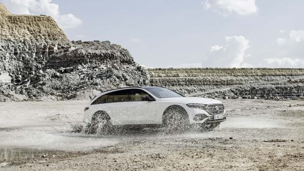 Голямото комби за черни пътища за първи път се появи на сцената през 2017 г., след като преди Audi определено успя да наложи A6 Allroad на пазара. Сега идва ред на втората генерация на всъдеходната Е-Class (X214), като на външен вид версията All-Terrain се разпознава лесно по независима решетка със сребърни подпори, специалните брони със защита на долната част, нови странични прагове и, разбира се, сивите матови капаци на калниците. 19-цоловите джанти с гуми 235/55 са стандартни, а като опция се предлага 19- или 20-цолови.