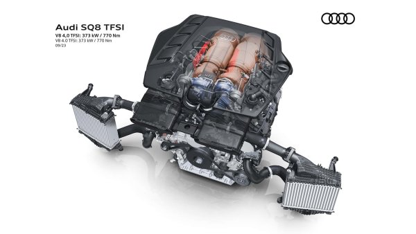 Що се отнася до SQ8 (синьото на снимките), той получава по-голям 4,0-литров V8 бензинов двигател с 500 к.с. и 770 Нм въртящ момент, позволяващи ускорение от 0 до 100 км/ч за 4,1 секунди. Тази версия получава 21-цолови, докато 22- и 23-цоловите са опция. Както при обикновеното Q8, този вариант също е с постоянно задвижване на четирите колела Quattro и 8-степенна автоматична скоростна кутия Tiptronic, която сменя предавките по-бързо при SQ8.