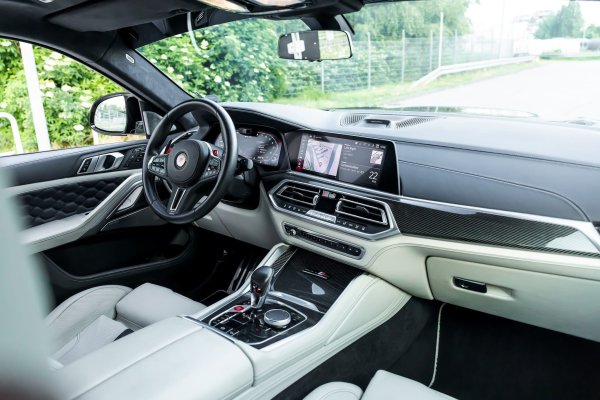 Салонът на спортния SUV остава напълно стандартен, тъй като базовият интериор на BMW X6 M Competition е бил напълно достатъчен за клиента и той е пожелал да не се правят промени.