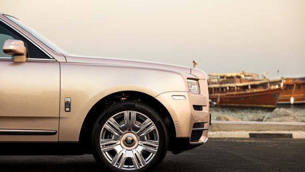 Специалният оттенък Pearl Rose е комбиниран с акценти от розово злато, включително фигурката Spirit of Ecstasy, централната част на колелото и всяка вложка на прага на вратата.