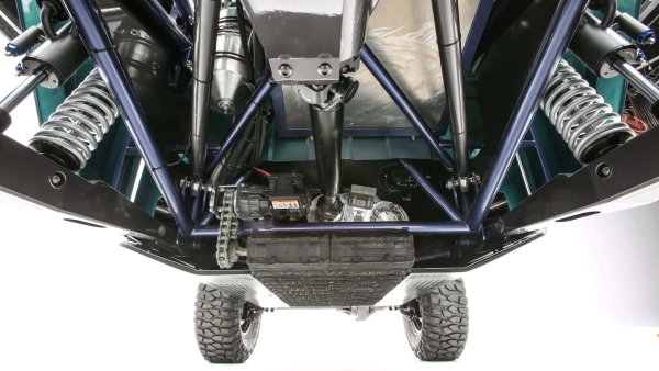 Необичайната машита е оборудвана с 42-цолови гуми BF Goodrich Krawler T/A KX за максимално сцепление. Те са обути на 20-цобови джанти Method Beadlock, които могат да достигнат до половината на предното стъкло при пълен ход.