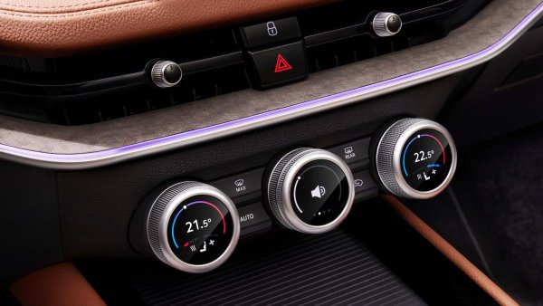 Що се отнася до този в средата, той осигурява достъп до силата на звука, режимите на шофиране, интелигентния климатик, скоростта на вентилатора и посоката на въздуха. Можете обаче да се изберат само четири от тях от менюто на инфотейнмънта. Този централен интелигентен циферблат е ограден от конвенционални бутони за вентилация на предното стъкло, отопление на задното стъкло, рециркулация на въздуха и автоматични функции на климатика.