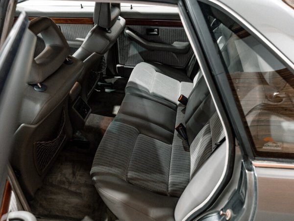Конкретният автомобил е произведен 1990 година, тоест в предпоследната година от жизнения цикъл модела с вътрешнофирмен индекс Typ 44. Състоянието му изглежда безупречно, а комбинацията от титаново сив металик отвън и сиви текстилни тапицерии с дървени апликации в интериора му придават типичната за марката ненатрапчива елегантност.