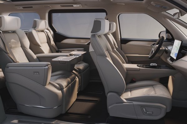Миниванът има панорамен покрив, виртуално табло, безжично зареждане за джаджи, аудиосистема Bowers & Wilkins с 21 високоговорителя и прожекционен екран, но опциите не са уникални: Zeekr 009 също предлага всичко това.