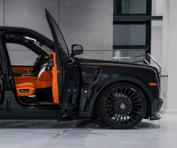 Всъдеходът получава черна радиаторна решетка, а външният му вид се допълва от тънка оранжева линия по периметъра на купето. Mansory обаче не публикува нито една снимка, която да показва целия интериор. Вижда се обаче, че този Cullinan е с ковани прагове от въглеродни влакна, носещи името Tiësto.