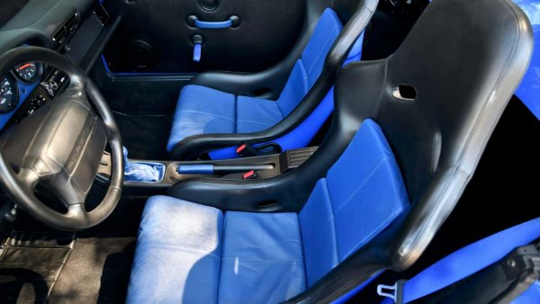 Боядисан в морско синьо и украсен с поръчков черен и син кожен интериор, автомобилът, който виждате, е така нареченият Mega Speedster, доработен от специалиста по следпродажбеното обслужване Виторио Стросек. Изключителността на този рядък и ценен екземпляр се крие не само в персонализираната цветова схема, но и в отличителната му широка каросерия, проектирана от Strosek, допълнена от полуелипсовидни фарове.