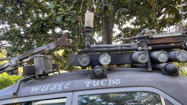 Преобразяването на спира дотук. Колата разполага с напълно функционална парна сирена, както и редица други детайли като допълнителни светлини, осветяващи пътя отпред, задно крило на Mercedes 190E, смело монтирано на предния капак, и нетрадиционна кутия за амуниции, превърната в държач за батерия на предния калник от страната на пътника.
