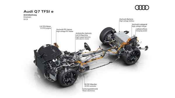Кросоувърите 55 TFSI e quattro и 60 TFSI e quattro са оборудвани с двигател V6 3.0 (340 к.с., 450 Нм), електромотор с нов дизайн (178 к.с., 460 Нм) и по-мощна тягова батерия, чийто капацитет е нараснал до 25,9 кВт/ч. Съответно електрическият пробег на хибридите се е увеличил и вече е равен на 90 км по цикъла WLTP EAER City или 85 км в комбинирания WLTP EAER.