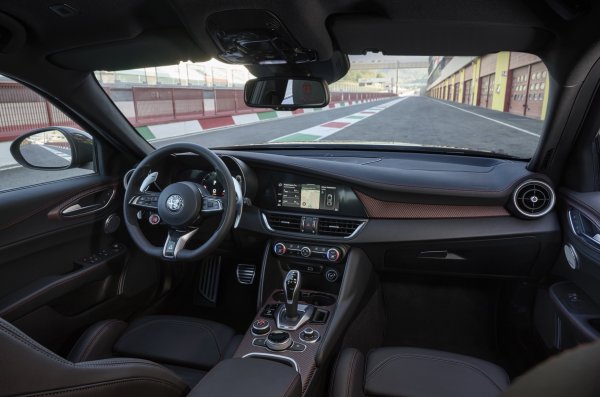 За интериорната декорация за първи път са използвани цветни въглеродни влакна, смесени с естествена кожа и алкантара. Предният панел разполага с 12,3-инчов цифров инструментален панел, който предлага избор от три дизайнерски теми: модерен Evolved Relax, ретро Heritage, напомнящ за моделите на Alfa Romeo от 60-те и 70-те години на миналия век и специална Race. Когато последното е активирано, на екрана се показват само оборотомерът, скоростомерът и, ако е избран ръчен режим на автоматичната трансмисия, индикаторът за смяна на предавките.