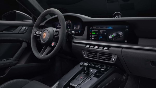Контролите включват селектора на режима на задвижване и за първи път в 911 бутона за стартиране вляво от волана. Инструменталният клъстър е напълно цифров и се състои от 12,6-инчов извит екран със седем опции за показване, включително вдъхновеният от Porsche „класически“ дисплей с пет кръгли габарити и оборотомер. В центъра на таблото за управление има 10,9-инчов монитор, който също интегрира AppleCarplay и гласовия асистент на Siri.