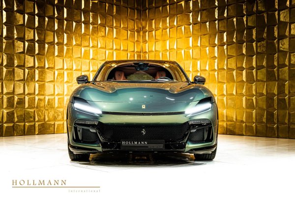 Това Ferrari Purosangue се продава от компанията Hollmann International, като в обявата се посочва, че той е чисто ново и има екстериорната боя Verde Minerale.