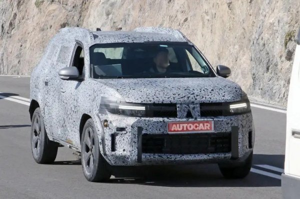 Първите снимки на новата Dacia Bigster, макар и под тежък камуфлаж, бяха разкрити от британското издание Autocar. Бъдещият най-голям SUV на марката запазва основните пропорции от прототипа, представен още през 2021, и добавя тънки LED фарове, силно приличащи на по-малкия Duster.