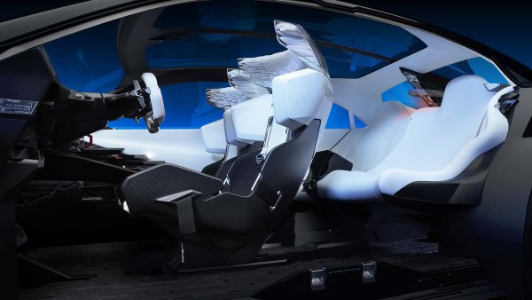 Интериорът обаче ще бъде преработен, тъй като е пълен с остри ръбове и други ъгловати елементи. Отпред има седалки тип „кофа“ с две позиции и прозрачни облегалки за глава, а отзад е поставен диван за двама пътници. Подът и другите вътрешни панели имат набраздени повърхности, напомнящи скала. Всичко това няма няма да се появи на серийния вариант, който ще трябва да се задоволи с по-скромен интериор.