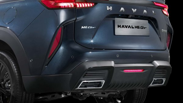 На размери Haval H6 GT достига 4,65 метра дължина, което го прави очевидно по-голям от Q3 Sportback, а една от силните му страни е в дизайна. Впечатляващ детайл в тази област е двойният спойлер отзад, като едната част е с четири фиксатора в горната част на задното стъкло, а другата е в долната част на вратата на багажника.
