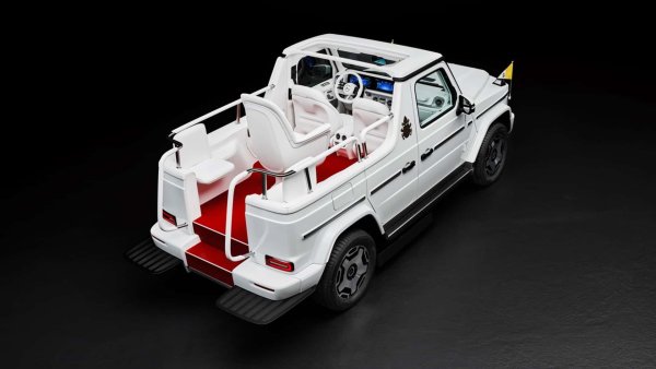 Mercedes-Benz G-Class, боядисан в бяло, е най-новото попълнение в автомобилния парк на Ватиката. Именно този папамобил ще превозна понтифика през 2025, когато всъдеходът записва юбилей (45 години). И нещо повече - това е първият електрически автомобил в историята, който ще води папата.