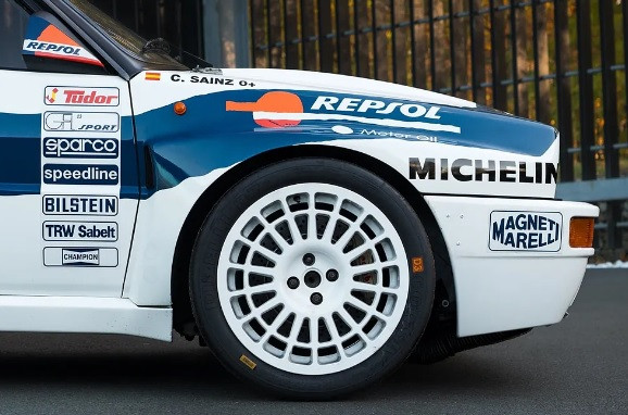 Това е колата, гласи рекламата на търга, с която Lancia постигна победа в Световната купа (не е изяснено коя). Тогава с реклама на Martini. Сегашният собственик на бижуто обаче не искаше да го върне към въпросната конфигурация, а да го запази в тази при Карлос Сайнц. Нищо, че кариерата му с Lancia не беше успешна.