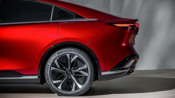 Колата има разпределение на теглото 50:50, многораменно задно окачване и електрически заден спойлер, който се разгръща при 90 км в час (или ръчно) за подобряване на стабилността. Външният дизайн на 6e е идентичен с EZ-6, който вече сме виждали, освен някои различни елементи. 19-инчовите джанти с пет спици имат дизайн за „увеличаване на пробега“. Ще има осем екстериорни цвята, от които да избирате, включително Melting Copper, Aero Grey и емблематичното за Mazda Soul Red.