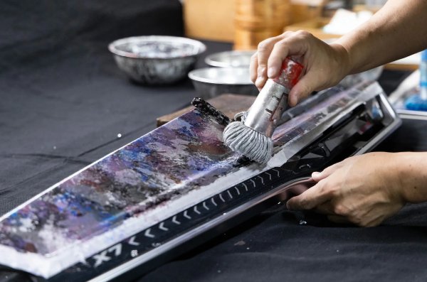 Подовите стелки за концепцията са направени от компанията Kawashima Selcon, основана през 1843 г. Тук все още използват ръчно тъкане и индивидуално боядисани конци - така наречената техника „касури“, която се характеризира с накъсани, неравни контури на шарките. Централният подлакътник е тапициран с плетка от кожени ленти с различни ширини с фолиен декор от Rakugei Kobo. Абстракциите на конзолата и предния панел са направени с техниката „goshiki gingasane“, използвайки черен лак и няколко вида фолио.