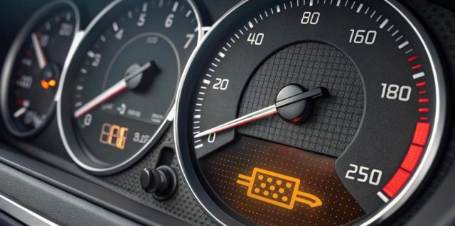 Появата на индикатора за неизправност на DPF филтъра на арматурното табло.