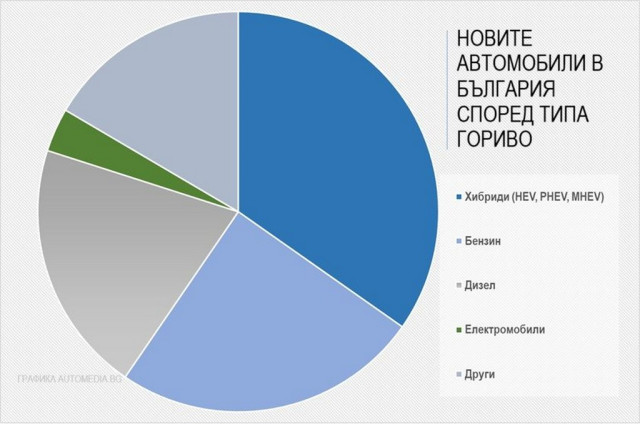 Хибридите вече са най-популярните нови автомобили на българския пазар, показва справката на Automedia.bg за регистрациите в МВР през януари 2025. През първия месец на годината у нас са регистрирани 4402 нови автомобила, като 35% от тях са хибриди, 25% са с бензинов двигател, а 20% са с дизелов. Само 3% от всички нови МПС са чисти електромобили - спад в сравнение с януари 2024.