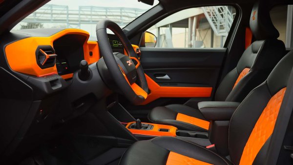 В средата под задната престилка, двойният ауспух на изпускателната система, изработен от висококачествена неръждаема стомана, също следва дизайна на Duster и има за цел да придаде на Dacia по-впечатляващ звук.