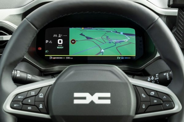 И накрая, на върха, идва колата, която тестваме. Тя разполага със 155 коня (което я прави най-мощната Dacia в историята на марката), идващи от пълна хибридна система с т. нар. многорежимна трансмисия, която Renault някога създаде за Формула 1.