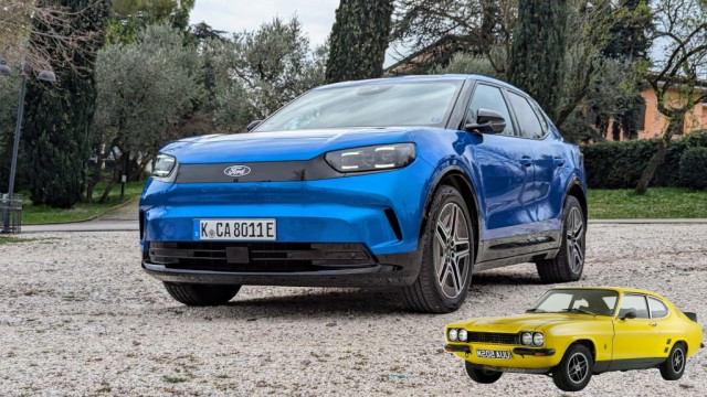 Продълговатите предни светлини с по два блока диоди търсят директна препратка към старата кола. Задните странични стъкла имат същата необичайна извивка, като при оригиналния Capri. А задните светлини са хванати в познатата тъмна рамка. Но като изключим това, между двата автомобила няма много общо.