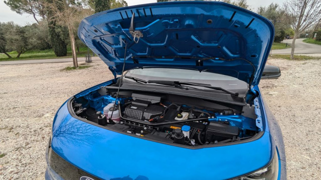 Този автомобил няма да попадне в дизайнерската зала на славата, но всъщност външният му вид е необичаен, интересен - и доста практичен. Скосената задна част не го подсказва, но багажникът побира над 570 литра, което е фантастично за този сегмент. И е почти двойно повече, отколкото в оригиналния Capri. Освен това е съчетано с много удобна 17-литрова ниша за вещи на централната конзола - според Ford най-голямата такава при лек автомобил. Ето ги и добрите страни на електрическото задвижване: при обща дължина 4.63 метра, Capri e с 5 см по-къс от Nissan X-Trail, но има със 7 см по-дълго междуосие.