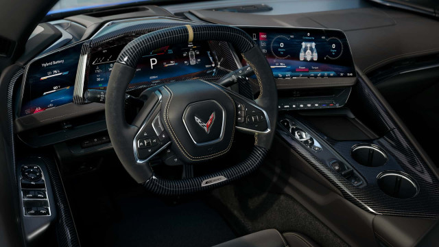 Дигитализацията на салона също е осезаема. Централният екран се простира по-далеч по арматурното табло и размерът му вече е увеличен на 12,7 инча. Пред шофьора има нов 14-инчов дигитален дисплей, а отляво друг 6,6-инчов сензорен, който служи като спомагателен екран. Там се показва информацията, ориентирана към водача, като пробег или данни от системата за управление на сцеплението Performance Traction Management. Ново покритие от въглеродни влакна върху големия дисплей е стандартно за ZR1 и опционално за E-Ray и Z06.