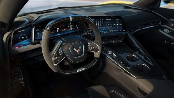 Дигитализацията на салона също е осезаема. Централният екран се простира по-далеч по арматурното табло и размерът му вече е увеличен на 12,7 инча. Пред шофьора има нов 14-инчов дигитален дисплей, а отляво друг 6,6-инчов сензорен, който служи като спомагателен екран. Там се показва информацията, ориентирана към водача, като пробег или данни от системата за управление на сцеплението Performance Traction Management. Ново покритие от въглеродни влакна върху големия дисплей е стандартно за ZR1 и опционално за E-Ray и Z06.