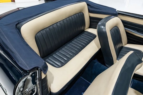 Този Dual-Ghia е боядисан в елегантния цвят Midnight Blue върху синьо-кремав интериор, съответстващ на периода, с подходящ тъмносин покрив. Има бели гуми с капаци на джантите, а красиво реставрирания салон е запазил стилните хромирани контролери, впечатляващите уреди и оригиналното радио Town and Country.
