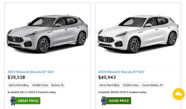 Американската компания за отдаване на коли под наем Hertz, която почти фалира преди няколко години и все още е в трудно финансово състояние, реши да се отърве от луксозните кросоувъри Maserati Grecale. В секцията "Автомобили за продажба" на официалния уебсайт са обявени нови автомобили със скромен за коли под наем пробег на около половината от цената на новите.