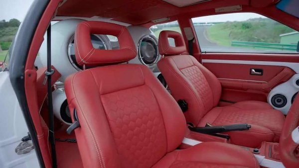 Интериорът на автомобила също е изцяло преработен. Той е тапициран с луксозна червена кожа с бели акценти. Зад предните седалки е инсталирана мощна аудио система, в случай че звукът на V10 двигателя не е достатъчен. Резултатът е уникално Audi S2 със сърце на R8, съчетаващо класически стил с модерни технологии.