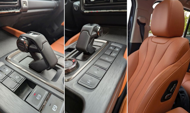 Ергономията на салона е чудесна, всичко е добре обмислено и точно там, където трябва да бъде. Имате физически бутони за всички важни неща - за климатика, за седалките, за камерите за наблюдение (даващи пълен 360-градусов обзор). И естествено, бутоните, които са най-важни в този случай и които съвсем малко SUV в България имат към наши дни: за понижаващата предавка и за блокажа на задния диференциал.