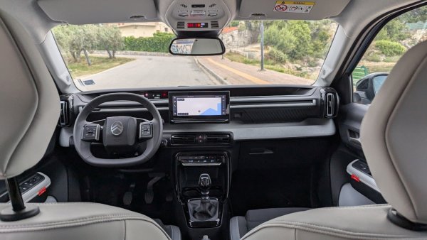 Както подобава на един Citroen, седалките са удобни и отпускащи, и не уморяват дори след 4-5 часа шофиране. Разположението на уредите е добре обмислено. Слава богу, в Stellantis са се вразумили и отново използват физически бутони за климатика, вместо да ви карат да целите в движение сензорния екран и да ругаете като марсилски докер. Харесахме също малкото екранче над волана, което показва най-важните неща, почти без да ви кара да отделяте очи от пътя.