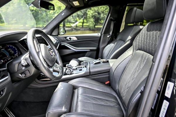 Интериорът повтаря до голяма степен този на стандартното BMW X7, но включва опционален панорамен стъклен покрив, прекрасна кожена тапицерия и система за съраунд звук Harman Kardon. Пълното черно може да изглежда малко скучно, но има някои зелени контрастни шевове на волана.