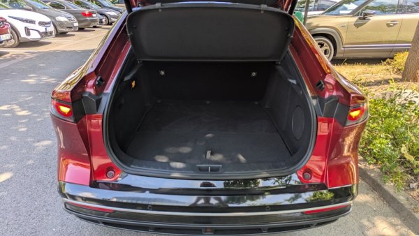 За съжаление не можем да потвърдим категорично разхода в реални условия, защото нашият тест в околностите на Леверкузен почти никъде не ни позволи да вдигнем над 90 км/ч. В такива условия, тоест при основно градски цикъл, тези 550 км ни се струват съвсем постижими. Всъщност, ако се вярва на Mazda, в града версията Long Range може да измине почти 700 километра. 6e има отлична аеродинамика, увенчана от подвижния заден спойлер, който автоматично се задейства при скорости над 90 км/ч.