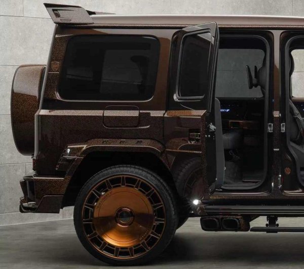 Наречена Mansory P820 Linea D'Arabo, тази свръхмощна Г-класа изглежда сякаш проектирана за максимално зрелище, завършена в наситено кафява боя с богато украсени арабски детайли по каросерията. И това е преди дори да стигнете до самата каросерия.