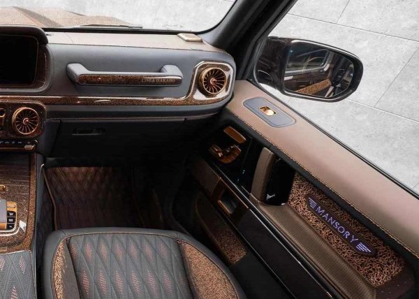 Наречена Mansory P820 Linea D'Arabo, тази свръхмощна Г-класа изглежда сякаш проектирана за максимално зрелище, завършена в наситено кафява боя с богато украсени арабски детайли по каросерията. И това е преди дори да стигнете до самата каросерия.