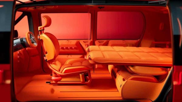 Салонът може да побере до шест души. Шофьорът седи в центъра, със седалка, която се върти на 180 градуса. Външните седалки на предния ред могат напълно да се премахнат. Задният триместен диван пък може да се превърне в легло с помощта на надуваеми матраци, напомпвани от вграден компресор. Като алтернатива, може да седнете отзад и да гледате филм на сгъваемия екран.