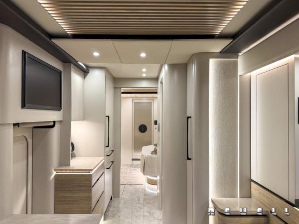 Обзавеждането за този модел е по индивидуална дизайнерска поръчка, а специално разработеното диодно осветление позволява прецизно регулиране на атмосферата. За максимално удобство на борда са интегрирани мощна климатична система и няколко модерни телевизора.