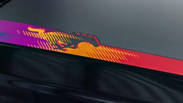 Лилави, червени и жълти цветове се сливат в едно. Графичният пакет използва стила Art and Speed на Troy Lee, но също така интегрира класически Mustang графики като препускащото пони върху вратите.