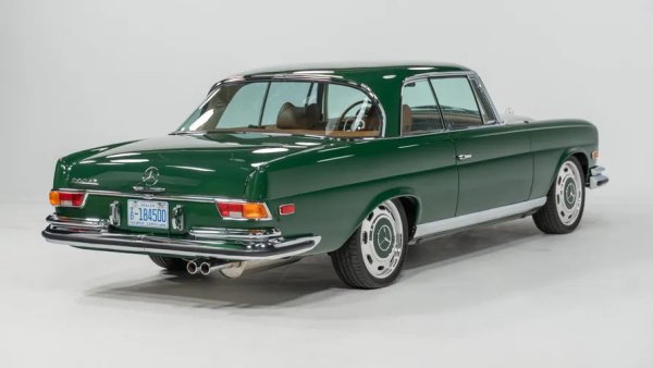 Отвън това е класически Mercedes W111, което означава, че е един от най-красивите луксозни автомобили, създавани някога от човешка ръка. От компанията са го боядисали в зелено, монтирали са джанти тип bullet, реставрирали са всички хромирани детайли и са го излъскали, за да блести безупречно.