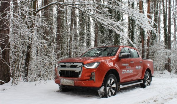Пробвахме го и в дълбок сняг, и в кал, и през водни препятствия: D-Max минава уверено навсякъде. Затрудни го само скритата под снега хлъзгава дълга трева - и вероятно щеше да се качи дори оттук, при почти 45 градуса наклон, ако имаше малко повече пространство за засилване.