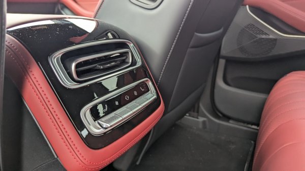 Подът на хибридната версия е абсолютно равен, така че спокойно можете да сложите някого да седне и в средата на задната седалка. Но ако не го направите, имате удобен падащ подлакътник с два къпхолдъра. Имате също бутони за климатика и за отоплението на задния ред.